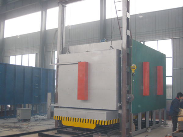 全纤维大型台车式回火炉(以下简称电炉),主要供一般大、中型金属或合金机件在额定温度下热处理之用