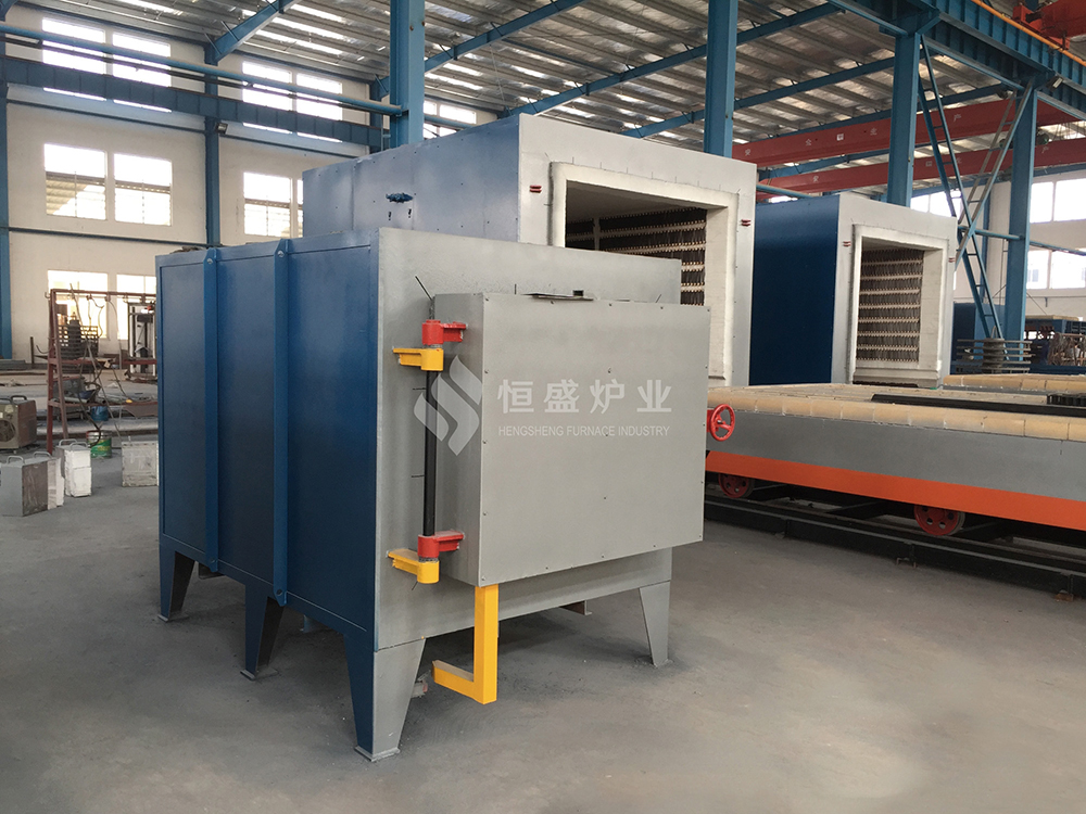 结构:结构采用全纤维硅酸铝甩丝毯制成模块筑成炉体,炉底采用轻质保温砖和重质耐火砖砌筑,加热元件采用电阻丝和电阻带加热,炉体外壳采用钢板和型钢制作,炉门采用机械传动;具体配置按客户和炉温要求设计配备。